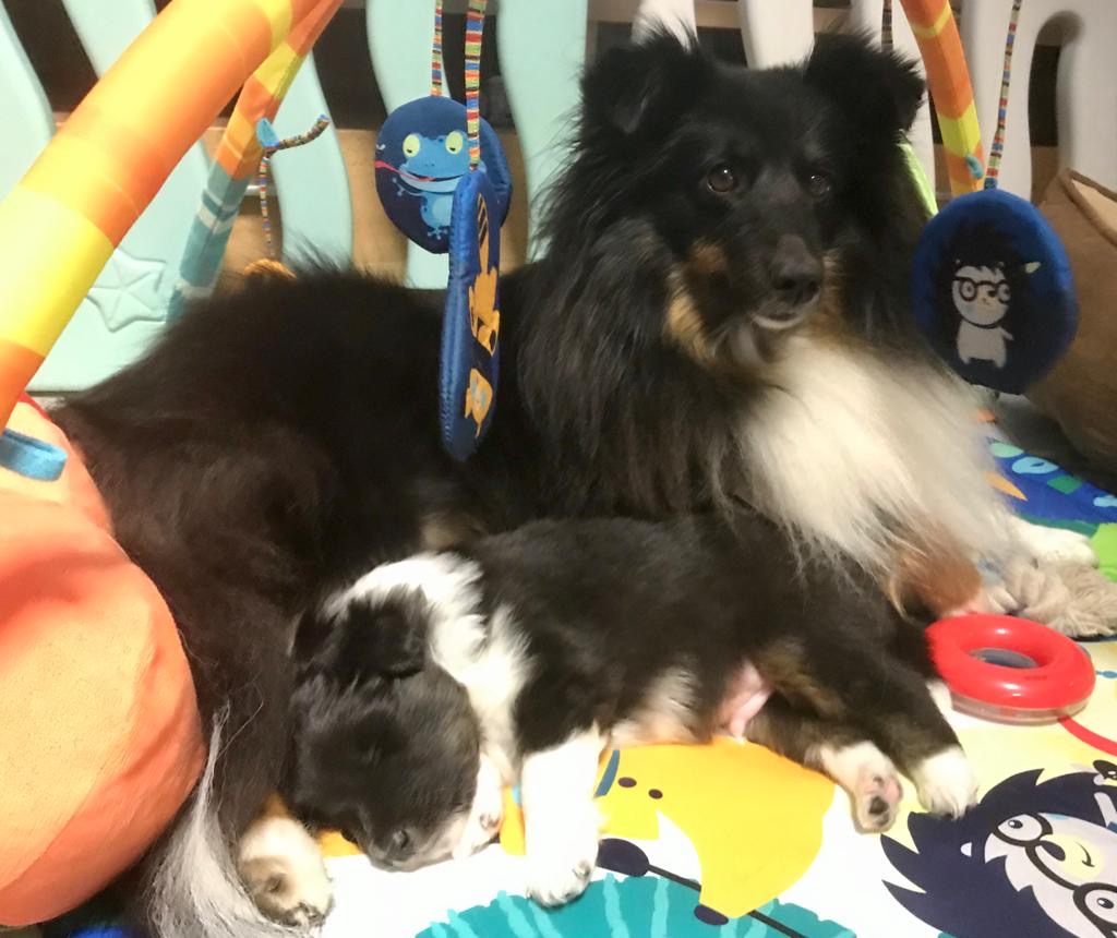 Dakota hat am 18.02.20 einen gesunden Tricolor Rüden (296g) bekommen. Dakota ist eine sehr liebevolle und fürsorgliche Mama. Wir sind sehr glücklich über den wunderschönen Prinzen.